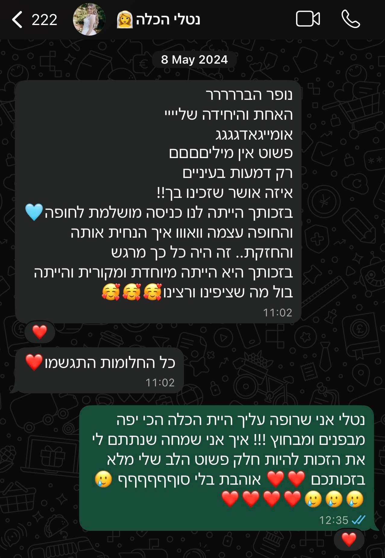 בין אם מדובר בטקס חופה מרגש, אירוע חגיגי, שיעור פיתוח קול או הקלטת שיר באולפן – אני מגיעה עם הקשבה עמוקה, מקצועיות גבוהה ויכולת להתאים כל חוויה באופן מדויק ואותנטי לאדם שמולי.
